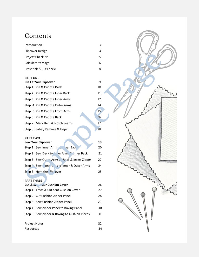 This is a printed how-to guidebook designed for DIY slipcover makers, including beginners! Basic sewing skills and a sewing machine in good working order are required.